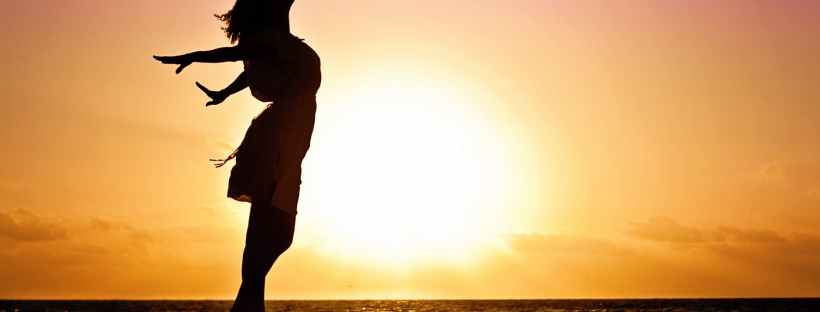 Die Arme ausbreiten, tief ausatmen.